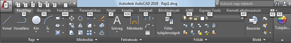 A billentyűtippek kiválasztásakor az adott eszközhöz tartozó több billentyűtipp is megjelenik. A fenti példában az Alt + H billentyűkombináció lenyomásával a Kezdőlap panel megnyílása mellett további billentyűtippek jelennek meg.