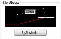 Amikor a méretbevitel be van kapcsolva a dinamikus eszköztippekhez, az eszköztipp távolság- és szögértékeket jelenít meg, miközben egy parancs a második pont megadását várja. Az eszköztippek méretei az egérmutató mozgatásával változnak. A Tab billentyűvel léphet a módosítani kívánt értékre. A méretbevitel a következő parancsok esetében lehetséges: ÍV, KÖR, ELLIPSZ, VONAL és VLÁNC.