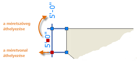 Ebben a példában válassza ki a méretet fogóinak megjelenítéséhez. Következő lépésként kattintson a méretszöveg fogójára, és húzza új helyre, vagy kattintson a méretvonal valamelyik végén megjelenő fogóra, és húzza a méretvonalat.
