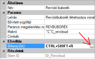 4. A Tulajdonságok ablaktáblán kattintson a Billentyű(k) mezőbe, majd kattintson a [] gombra a Billentyűparancsok párbeszédpanel megnyitásához.