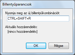 Az Aktuális hozzárendelés címke megmutatja a beírt billentyűkombinációhoz jelenleg hozzárendelt funkciókat, ha vannak ilyenek. Ha nem szeretné lecserélni az aktuális billentyű-hozzárendelést, használjon egy másik billentyűkombinációt.