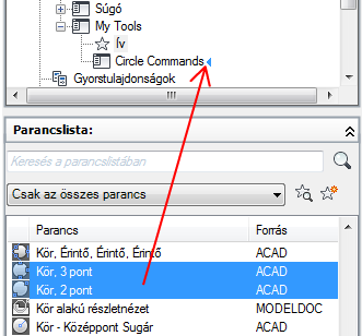 A Parancslista területről húzza az almenühöz hozzáadni kívánt parancsot a