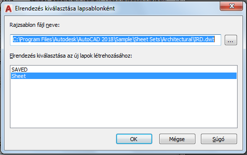 Megadja a rajzsablonfájl elérési útvonalát és nevét, amelyet az új lapok létrehozásához fog használni.