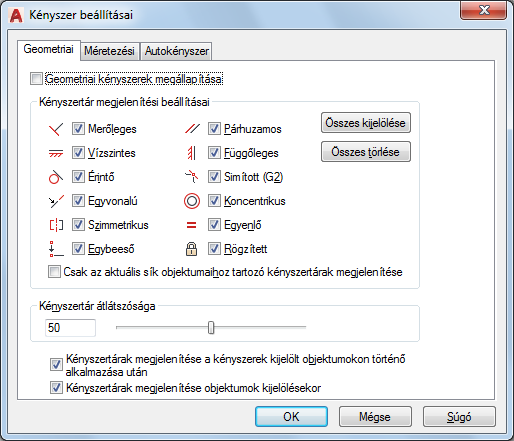 A különböző típusú kényszerek beállításai különböző lapokon találhatóak.