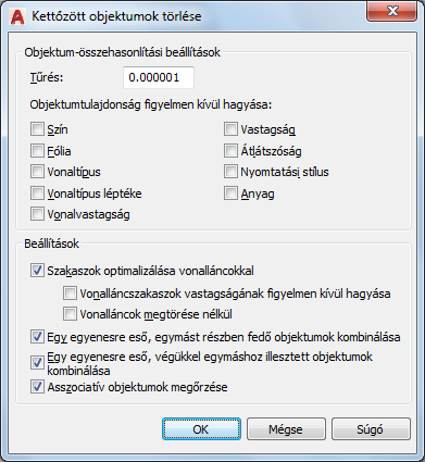 Amikor be van jelölve, a rendszer megvizsgálja a kiválasztott vonalláncokon belül lévő egyéni vonalakat és ívszakaszokat. Eltávolítja a kettőzött csúcsokat és szakaszokat.