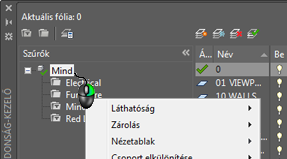 A kijelölt fóliát aktuális fóliának állítja be. Az új objektumok automatikusan az aktuális fólián jönnek létre. (CLAYER rendszerváltozó)