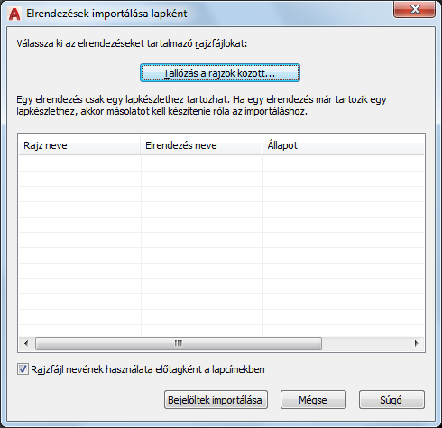 Ha egy elrendezés már hozzátartozik egy lapkészlethez, az importáláshoz az elrendezést tartalmazó rajzról másolatot kell készítenie.
