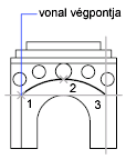 Egy ív létrehozható három pont megadásával. Az alábbi példában az ív kezdőpontja egy vonal végpontjához illeszkedik. Az íven lévő második pont a kör középpontjához illeszkedik.