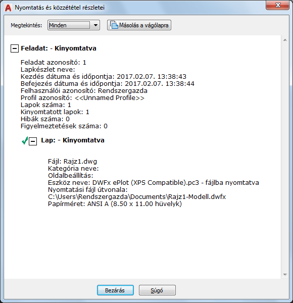 Információt jelenít meg az aktuális munkaszakaszban befejezett nyomtatási és közzétételi feladatokról.