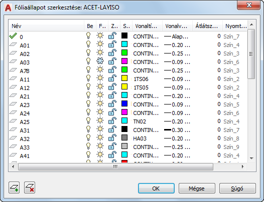 Megjelenik a kiválasztott fóliaállapotban mentett összes fólia és tulajdonságaik listája.