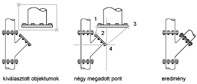 Két pontpár kiválasztásakor az objektumok eltolhatók, elforgathatók és léptékezhetők, hogy illeszkedjenek más objektumokhoz.