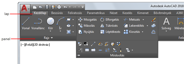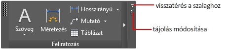 A szalagon kompakt palettán férhet hozzá minden olyan eszközhöz, amelyre egy rajz létrehozásához vagy módosításához szüksége lehet. Az alábbi helyzetekben helyezhető el: