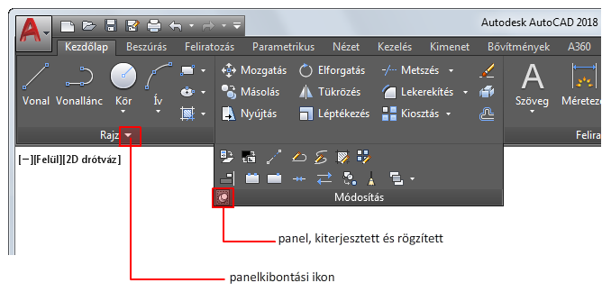 A paneleket a szalaglapról áthúzhatja a rajzterületre vagy egy másik képernyőre. A lebegő panel mindaddig nyitva marad, amíg vissza nem húzza azt a szalagra. A panel még akkor sem zárul be, ha esetleg másik szalaglapot aktivál.