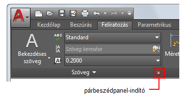 Egyes szalagpanelek hozzáférést biztosítanak a panelhez kapcsolódó párbeszédpanelhez. A kapcsolódó párbeszédpanel megjelenítéséhez kattintson a párbeszédpanel-indítóra, amelyet egy nyíl ikon jelöl (