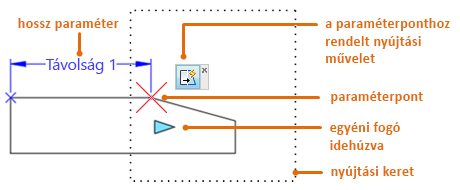 Általánosan megfogalmazva, először egy paramétert hoz létre, majd egy műveletet társít a paraméterhez. A paraméter egy paraméterpontként jelenik meg, és egy vagy több egyéni fogó tartozik hozzá, amelyek a blokk rajzba történő beszúrását és kiválasztását követően jelennek meg.