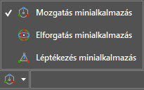 Megjeleníti a 3D minialkalmazásokat, amelyek egyszerűbbé teszik az objektumok 3D tengely vagy sík mentén történő halmazának áthelyezését, elforgatását, illetve léptékezését. |