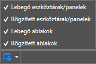 | Keres | Felhasználói felület zárolása | Rögzíti az eszköztárak és a rögzíthető ablakok (például a DesignCenter és a Tulajdonságok ablak) pozícióját és méretét. |