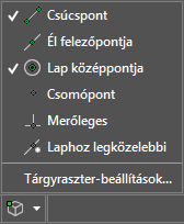 | Keres | 2D tárgyraszter | A mutató mozgatása során a legközelebbi 2D hivatkozási ponthoz illeszti a mutatót. Ezek lehetnek például végpontok, körök középpontjai, felezőpontok stb. |