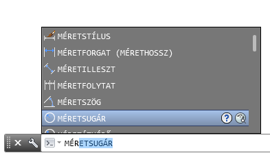 Gépeljen tovább a lehetőségek szűkítéséhez, vagy használja a nyíl billentyűket a listán való felfelé és lefelé mozgáshoz. Nyomja le az F1 billentyűt a kiválasztott parancs vagy rendszerváltozó Súgó témakörének megjelenítéséhez. Továbbá a mutatót egy eszköz felé helyezheti egy eszköztárban vagy a szalagon, és lenyomhatja az F1 billentyűt.