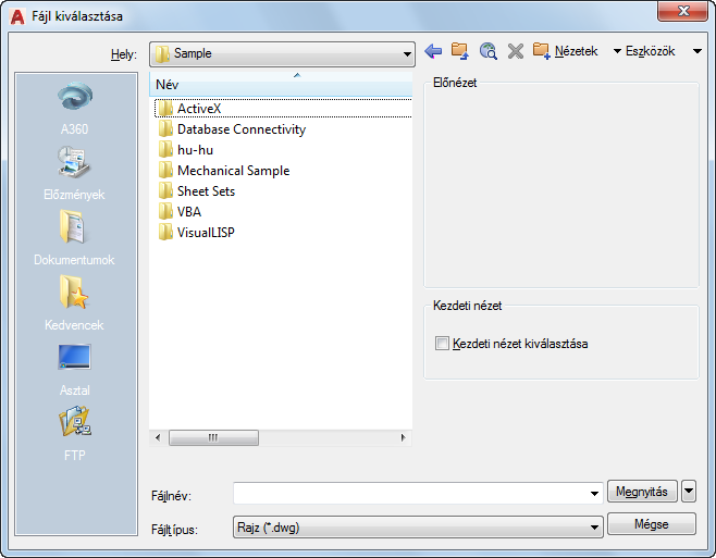 Megjeleníti a kiválasztott fájl bitképét. Ahhoz, hogy a bitképet rajzfájllal együtt mentse el, jelölje be az Előnézeti kép elmentése jelölőnégyzetet a Beállítások párbeszédpanel Megnyitás és mentés lapján.