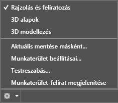 Amennyiben egy rajzi megjelenítést megváltoztat (például egy eszköztár vagy egy eszközpaletta csoport mozgatásakor, elrejtésekor vagy megjelenítésekor), és a jövőben ezeket a megjelenítési beállításokat még használni szeretné, mentheti az aktuális beállításokat egy munkaterületbe.