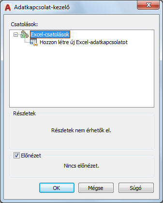 Megjelenik a csatolt adatok előnézete, ahol az adatok úgy látszanak, mint a rajz táblázatában. Ha éppen nincs kijelölve adatkapcsolat, nem jelenik meg előnézet.