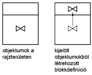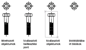 Az alábbi ábrán a blokkdefiníciók rajzon belüli létrehozásának tipikus lépései láthatók.