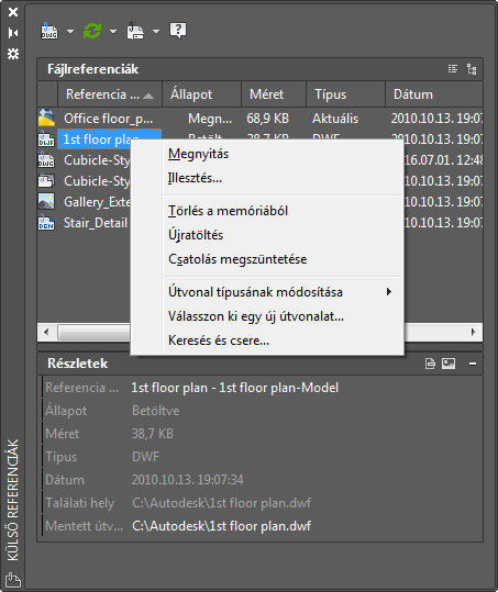 Ha a módosításra kijelölt referencia külső referenciákkal vagy blokkdefiníciókkal rendelkezik, a referencia és annak beágyazott referenciái a Referencia szerkesztése párbeszédpanelen választhatók ki. A beágyazott referenciák csak akkor jelennek meg, ha a kijelölésre kiválasztott objektum egy beágyazott referencia része. Egyszerre csak egy referencia választható ki módosításra. OLE-objektumokat tartalmazó referencia módosításakor az OLE-objektumok megjelennek, de szerkesztés céljából nem választhatók ki.