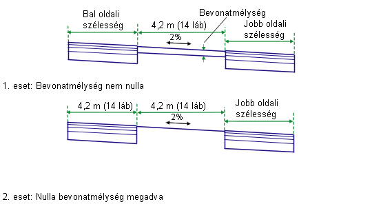 Ha a megadott Bevonatmélység nulla, akkor a kiszélesedő sávok kifelé kerülnek beillesztésre a beillesztési eltolástól a meglévő szinten.