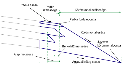 | Burkolat2 metszése | A Burkolat2 anyag csökkentett szélessége, amellyel az ágyazat összekötése lehetővé válik. Az anyagréteg oldalélének esése a padka körömvonalának esésével azonos lesz. | Numerikus, pozitív |