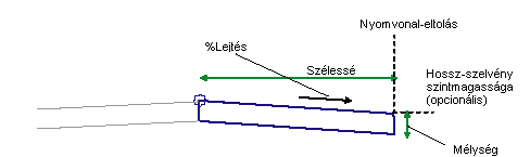 A sáv szélessége és lejtése a Szélesség és %Lejtés beviteli paraméterek értékének megfelelően alakul. |