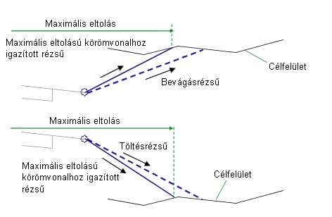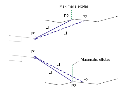 Ha nyomtervmodellezés során a Maximális eltoláshoz egy vízszintes eltolási nyomvonal kerül hozzárendelésre, akkor a Maximális eltolás értéke a nyomvonal eltolásához igazodik.
