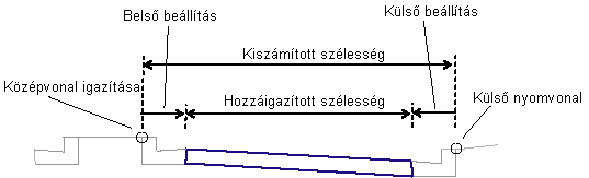Ezzel elmozdítható a sáv végső eltolása, hogy az a sáv éle által meghatározott nyomvonalat kövesse. A szélesség megadása a következő objektumtípusok esetén lehetséges: nyomvonalak, vonalláncok, vezérlővonalak és földmérési alakzatok. |