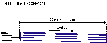A forgalmi sáv belső élének helye az előző ábrán látható három eset alapján kerül kiszámításra. Ha nincs megadva a Középvonal éle nyomvonal, vagy a megadott érték nem található meg egy szelvénynél, akkor a belső él a csatolási pontnál marad (1. eset). Ha a Középvonal éle nyomvonal meg van adva, és a nyomvonal kívül van a sáv csatolási pontján, akkor a belső éle kifelé mozdul el a csatolási ponttól a sáv lejtésével (2. eset). Ha a Középvonal éle nyomvonal belül van a sáv csatolási pontján, akkor a belső éle kifelé mozdul el a csatolási ponttól a sáv lejtésénél (3. eset).
