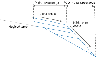 | Padka alapértelmezett esése | Az alak felületének alapértelmezett oldalesése. Ezt az értéket akkor használja a program, ha a túlemelési lejtés nincs használatban, vagy nincs megadva a fő nyomvonalhoz. | Numerikus | - 2.0 % |