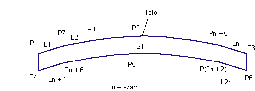 A párkányvonalat a (a forgalmi sávok újonnan létrehozott éleit jelző) bal és jobb perempontok összekötése adja meg. Ezt a párkányvonal több „növekményi” paraméterre tagolódik, a középső pedig a „tetőpont” eltolása. A tetőpont magassága úgy jön létre, hogy a „tetőmagasság” paramétert hozzáadjuk a párkányvonal középpontjának magasságához.