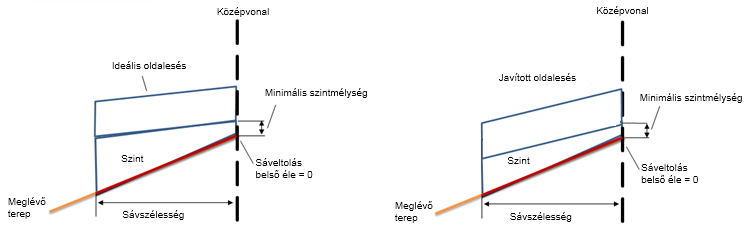 | Eséstűrés | Meglévő talaj esése mínusz Ideális oldalesés egyenlő –1%-kal, ami nagyobb, mint a 0,5%-os Eséstűrés |