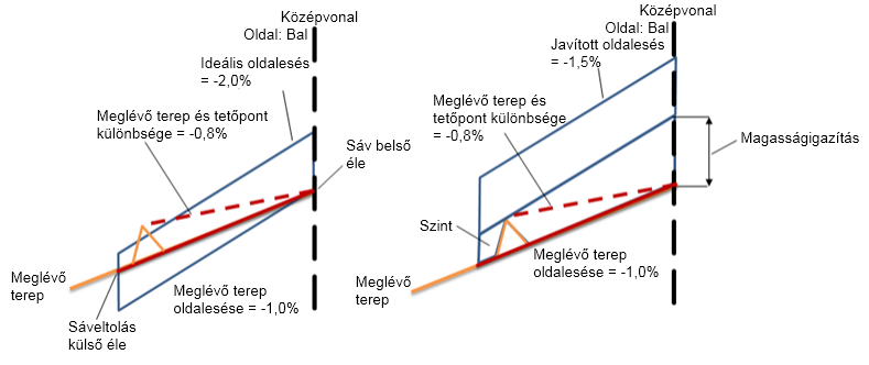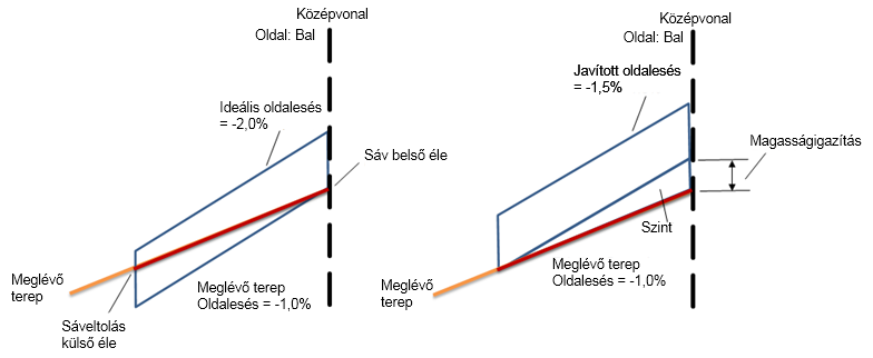 | Meglévő talaj oldalesése - Ideális oldalesés | –0,4% |