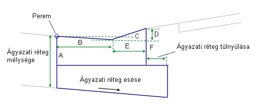 Megjegyzés: Az ágyazati kóták méterben vagy lábban vannak kifejezve. A szegély és a vízlevezető csatorna kótáit milliméterben vagy hüvelykben kell megadni.