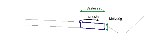 A padka kapcsolódásai kifelé kerülnek beillesztésre a csatolási ponttól, a megadott szélességgel, lejtéssel és mélységgel.