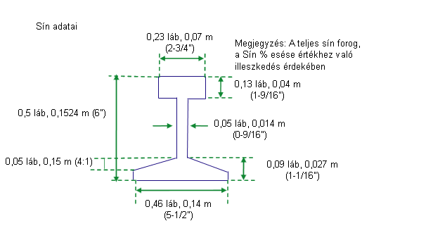 Megjegyzés: Minden méret méterben vagy lábban van megadva, ha nincs feltüntetve más mértékegység. Az összes rézsű a távolság-magasság arányában van megadva (például 4 : 1), ha nincs „%” jellel ellátva.