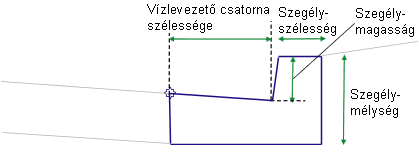A szegély és a vízlevezető csatorna beillesztési pontját adja meg, Szegély hátaként vagy Vízlevezető csatorna éleként. |