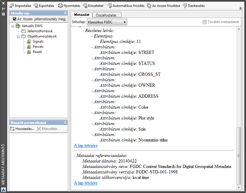 Az osztályozott rajzok metaadatai automatikusan jönnek létre.