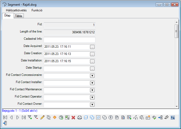 Az Adatnézet a rajzokhoz csatolt külső adatokat jeleníti meg