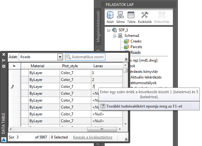 A gyakorlatok folytatásához lépjen tovább a 3. lecke: SDF adatok átvitele más térinformatikai formátumba részre.
