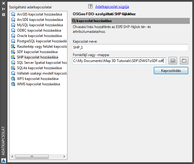 Kapcsolódjon a korábban létrehozott SDF-fájlhoz.