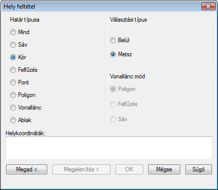 A Hely feltétel párbeszédpanelen tegye a következőket: A Határ típusa területen jelölje be a Kör rádiógombot.