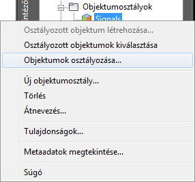 Kattintson a jobb gombbal kattintson a Jelek objektumosztályra a Munkatér Intézőben a Feladatok lapon, majd kattintson az Objektumok osztályozása lehetőségre.