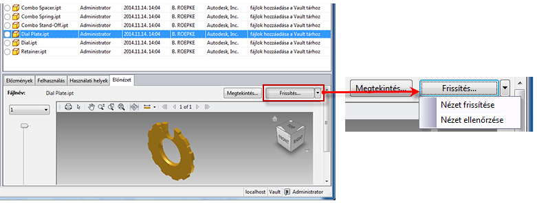 Megjegyzés: Ez a beállítás állandó marad. Ezentúl a Frissítés gombra kattintva a rendszer minden alkalommal a Feladatszervert fogja használni a látványtervfájl létrehozásához.