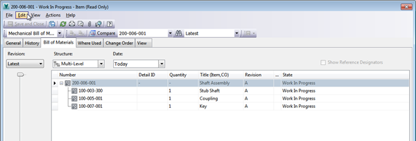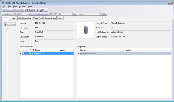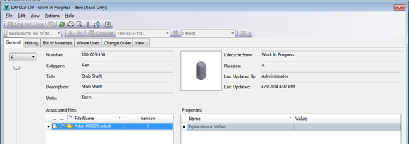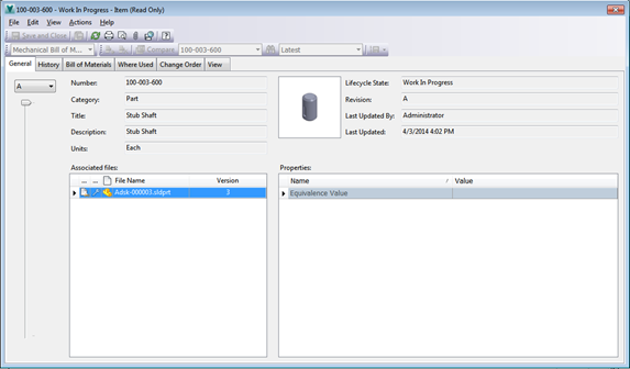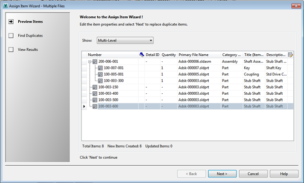 A Vault létrehoz egy tételt egy darabjegyzék a CAD fájlt.